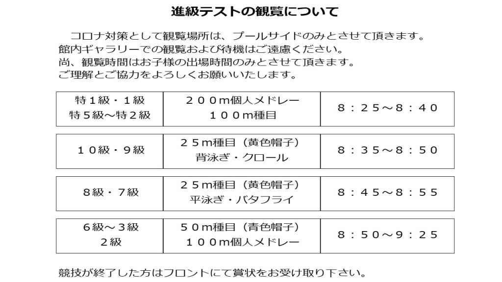 [ 2021/02/26 ] GSC大会😃 進級テスト編① 進級テストの日も館内は、観覧禁止となっています。 プールサイドは、観覧出来ますが 時間差でプールサイドへ降りて頂いています。 時間が決まっていますので、前日にコーチブログで観覧時間を確認しておいて下さい( ´ω` )/ 観覧時間までは、1度ご退館をお願い致します。 館内がなるべく蜜にならないよう 皆様のご協力よろしくお願い致します(*´∀`*) | 10:00 AM | comments(x) | trackback(x) |