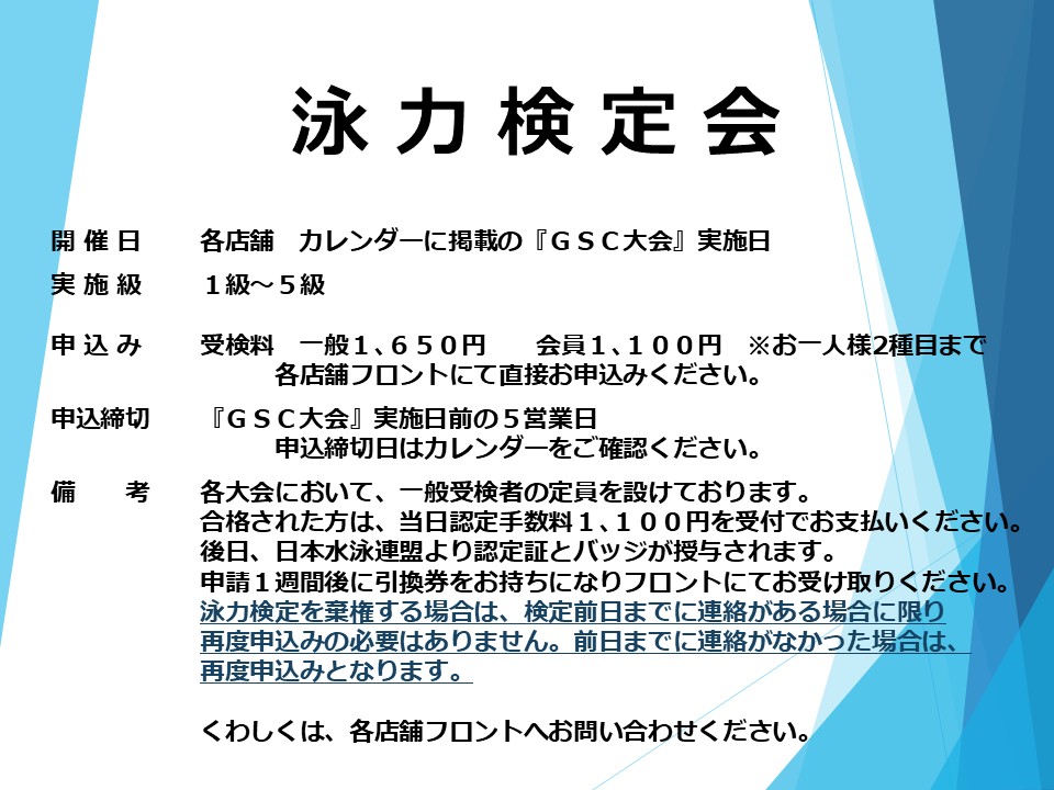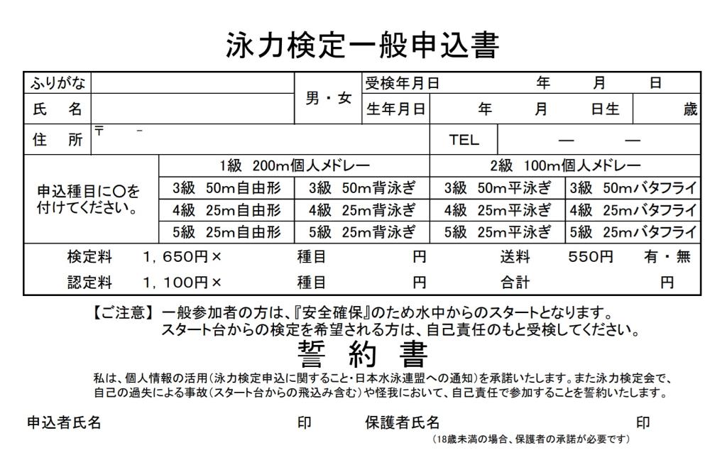 [ 2017/07/05 ] 泳力検定 申し込みについて 一般(非会員)の方は下記申込書にご記入の上、お申し込みください。 2026年4月1日改定 | 04:04 PM | comments(x) | trackback(x) |