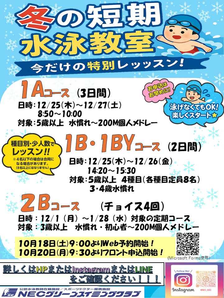 『冬の短期水泳教室』お知らせ