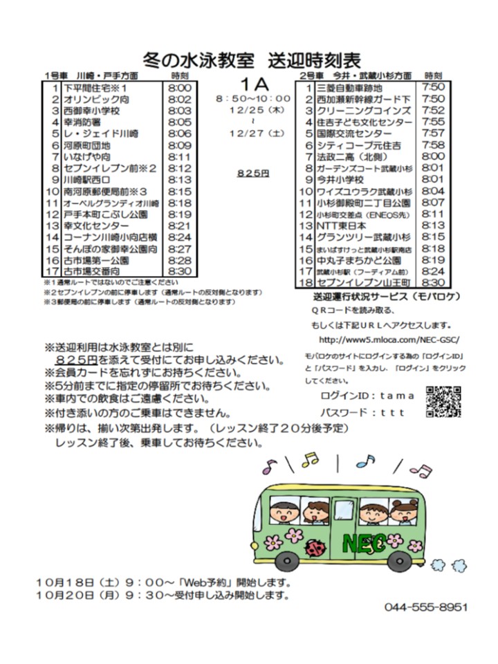 ☆送迎移動施設について(1Aコースのみ)